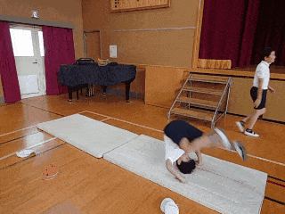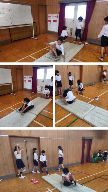 グループで声をかけあいながら、楽しく、けがをしないように気を付けて練習していました。