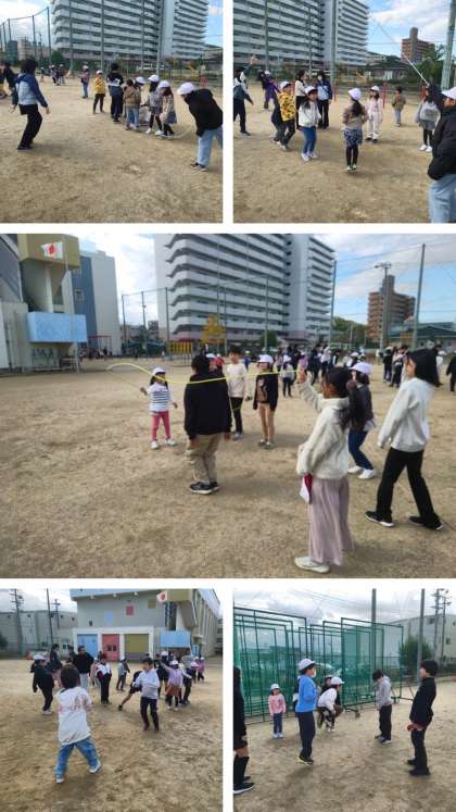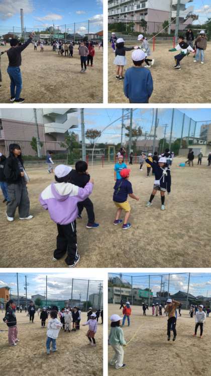 20分休みは、ドレミ班(たてわり班)のメンバーで大なわとびを練習しています。
