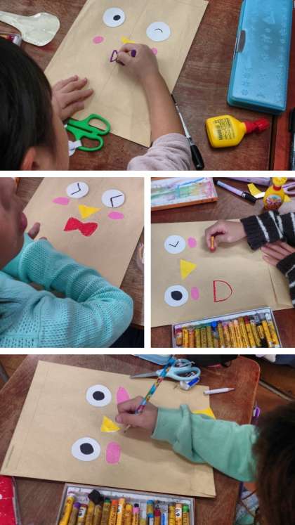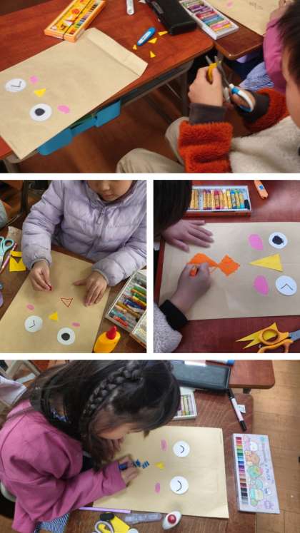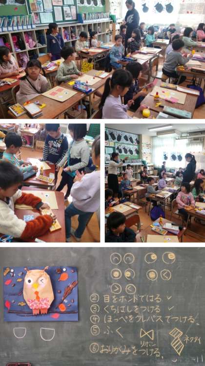 図工科の時間は、不要になった封筒を使って、ふくろうを作っています。