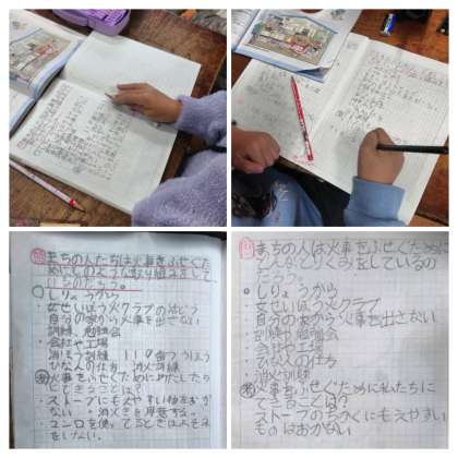 社会科の時間は、地域で行っている防火の取り組みについて調べました。