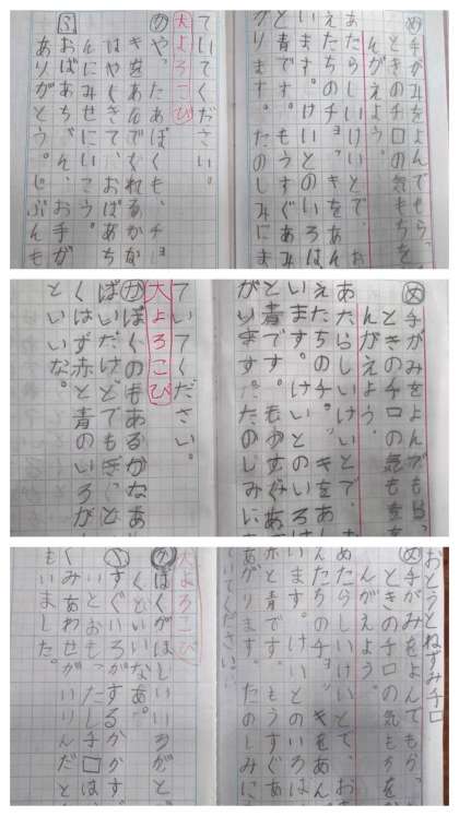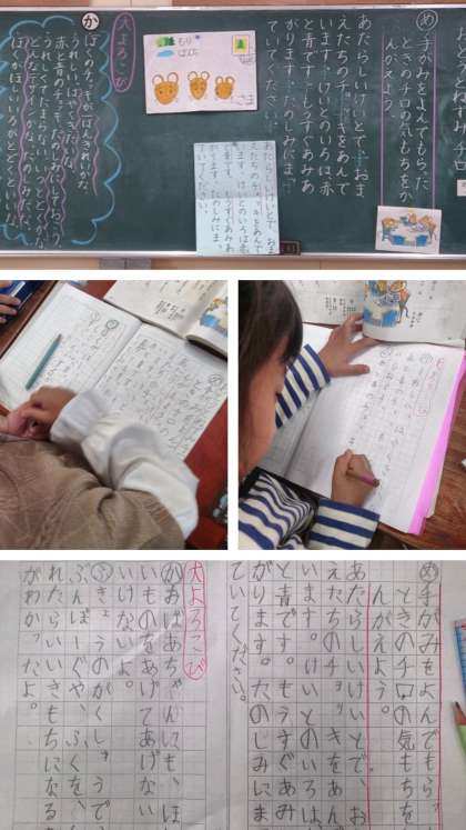 今日は、おばあちゃんから届いた手紙を読んでもらったときの主人公チロの気持ちをみんなで考えました。