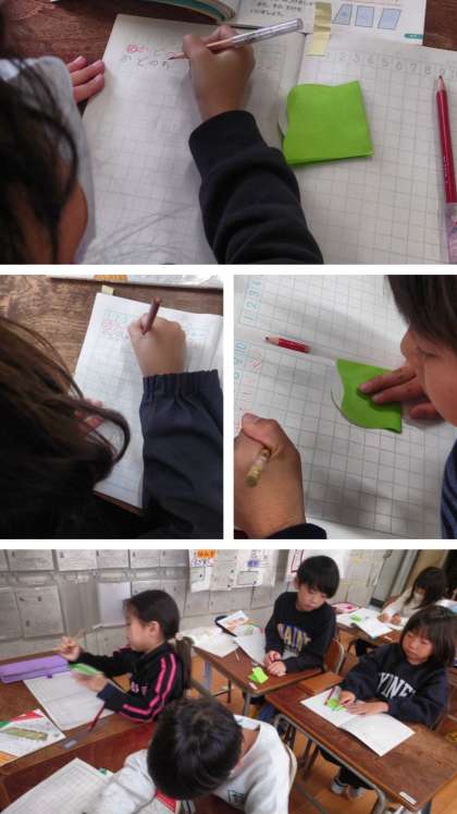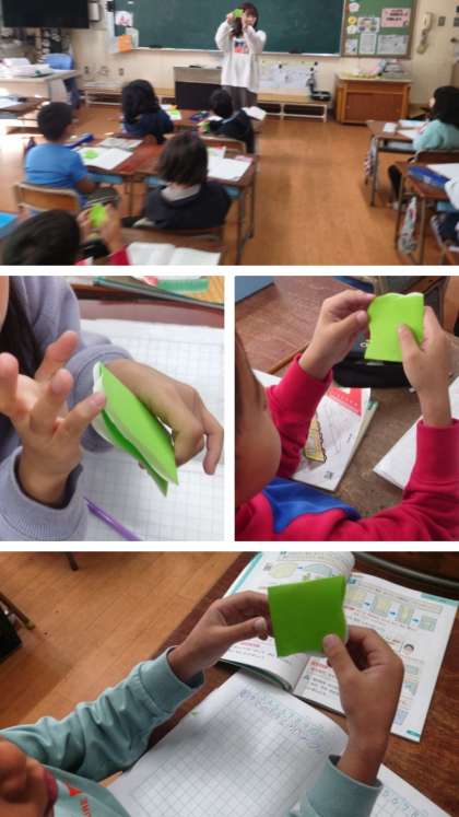 算数科の時間は、紙を折ってできる角の形について学習しました。