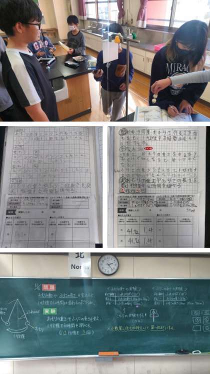 今日は、「おもりの重さ」や「ふりこの長さ」を変えると1往復する時間は変わるかどうか実験しました。