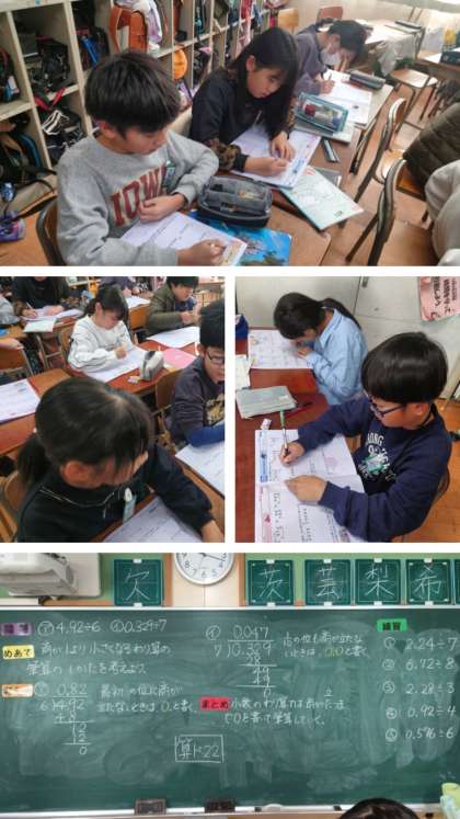 今日は、商が1より小さくなるわり算の筆算の仕方を練習しました。