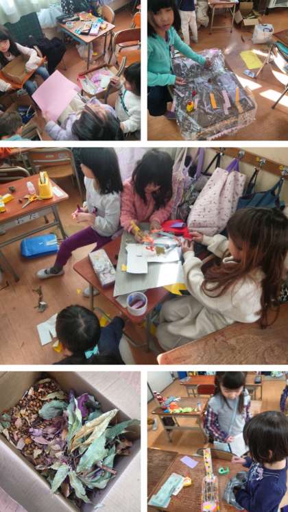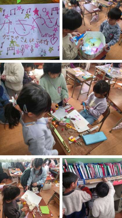 生活科の時間は、みんなで「どんぐりまつり」の準備をしました。