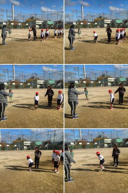 体育科の時間は、みんなで大なわとびの練習をしました。