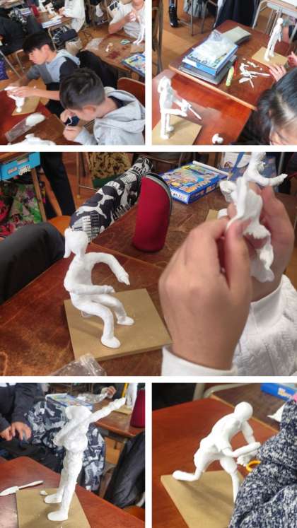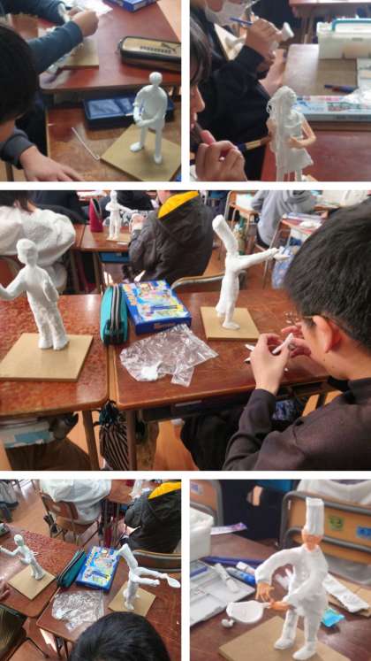 図工科の時間は、将来の自分を想像し、芯材を使って紙粘土で形にしました。
