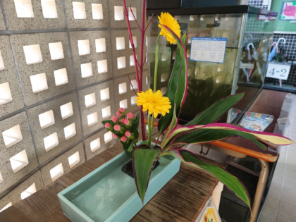 地域の方が玄関の生け花を活けていただいています。