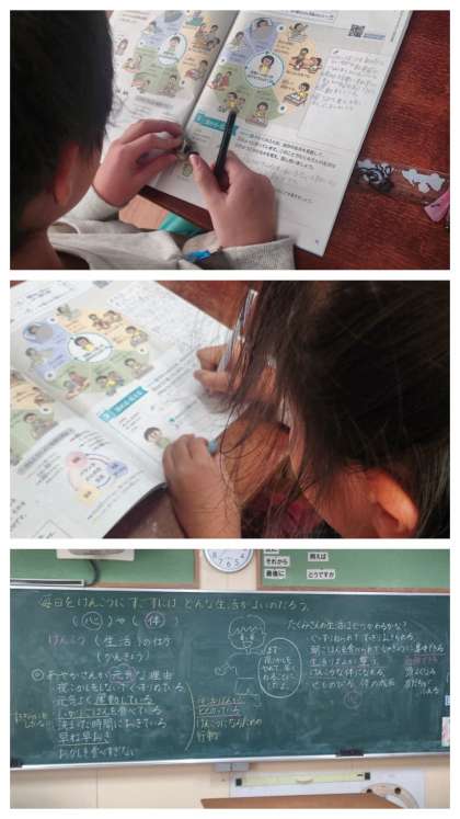 保健の時間に、教科書を使って「健康生活の仕方」について学習しました。