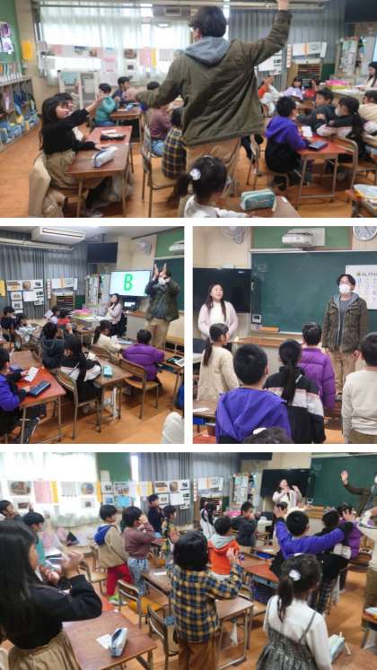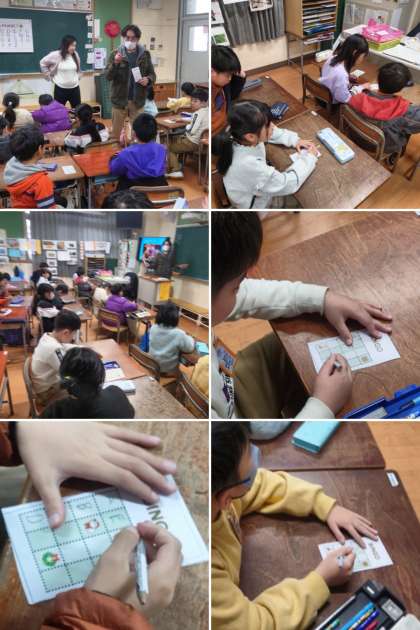 画面に出てきたアルファベットに印をつけていき、たて・横・ななめにそろったらビンゴです。