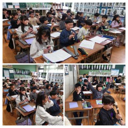 音楽科の時間は、リコーダーでジャズの名曲「シング・シング・シング」の演奏をしました。