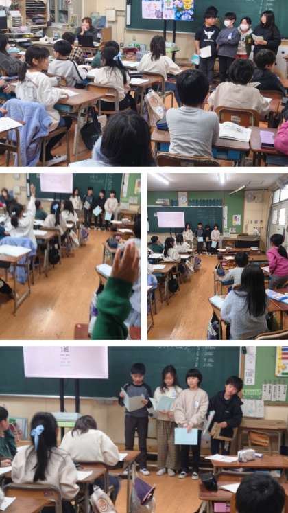 おとなりのクラスは、パソコンを使ってプレゼンテーションをしました。
