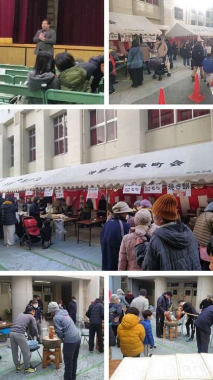 今年も焼野地域諸団体の合同による「もちつき大会」が本校の中庭と講堂で行われています。