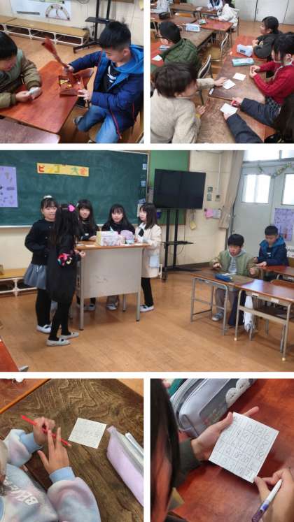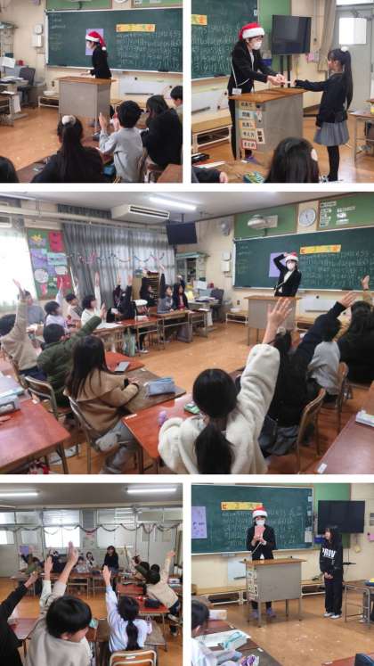 午前中、各学級で学習をしたり、お楽しみ会をしたり、通知表を渡したり、冬休みの生活について話をしたり、大そうじをしたりしてすごしました。