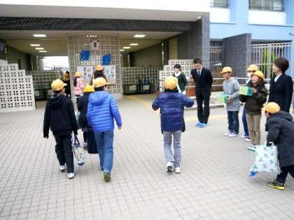 今日から3学期が始まりました。児童会が登校時に「書き損じハガキ、切手」を回収しながら、あいさつをしてくれています。