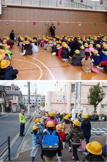 避難訓練集団下校!いつもありがとうございます見守り隊の方