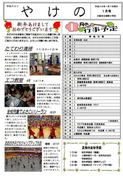 学校だより1月号を配布します。