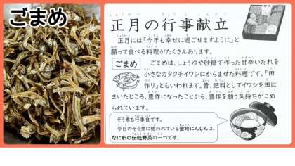 「ごまめ」は、おせち料理の一品で、五穀豊機を願って食べます。