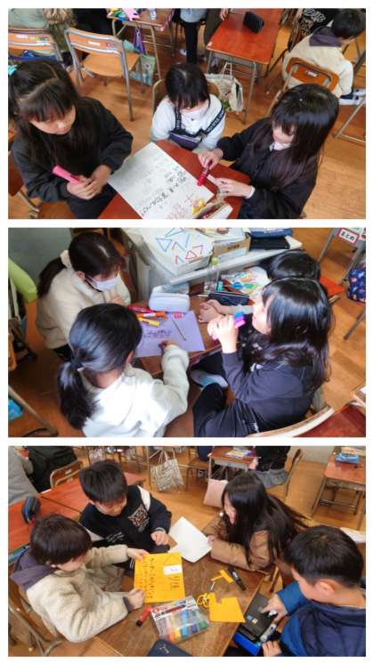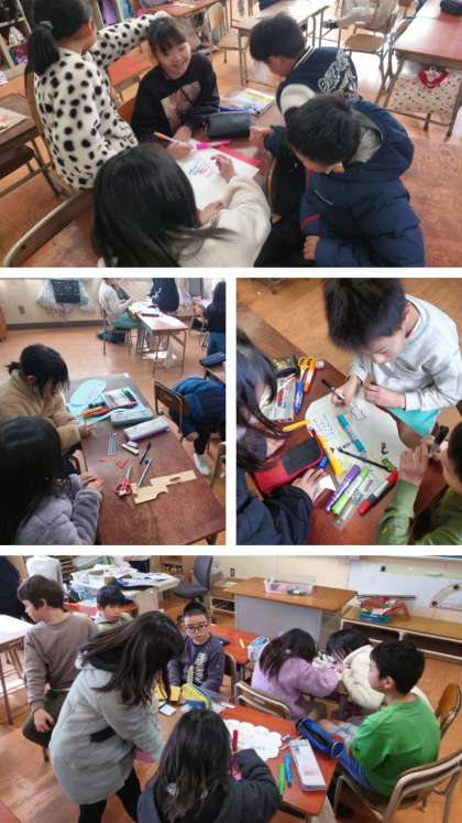 学級活動の時間は、係のグループに分かれて、メンバーや仕事内容を知らせるための掲示物を作りました。