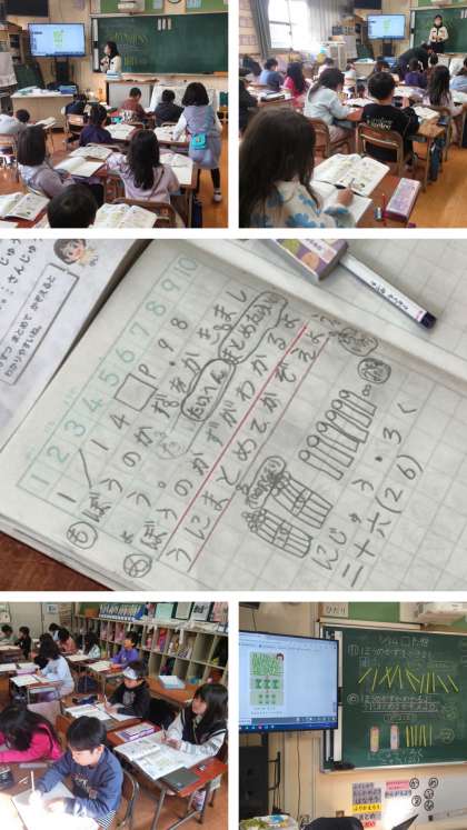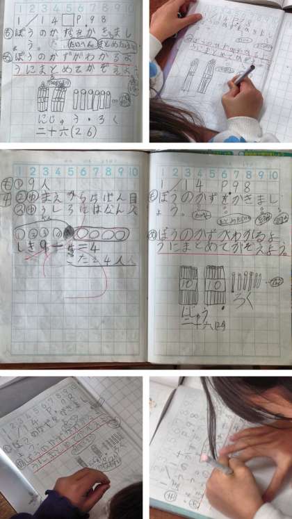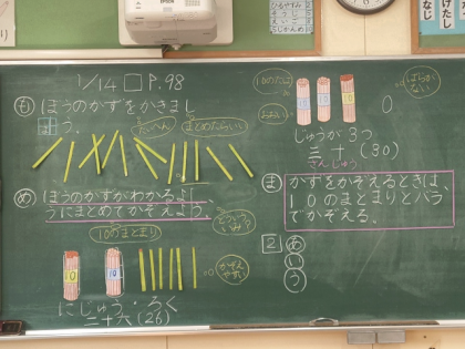 棒の数がわかるように、10ずつのまとまりをつくって数えるといいですね。