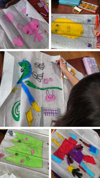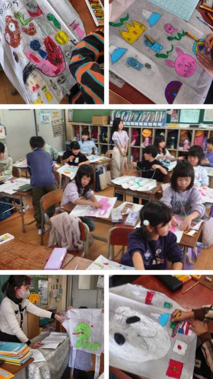 「ぐにゃぐにゃだこ」に思い思いの絵を描いています。