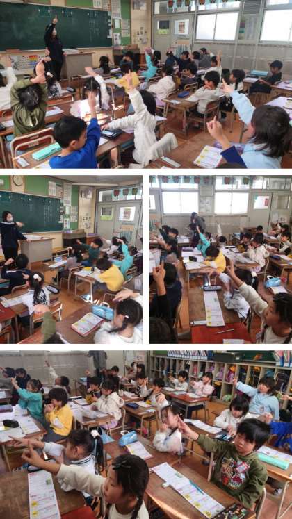 まず指で空に書いて、指でドリルに書いて、その漢字が含まれる言葉を出し合います。