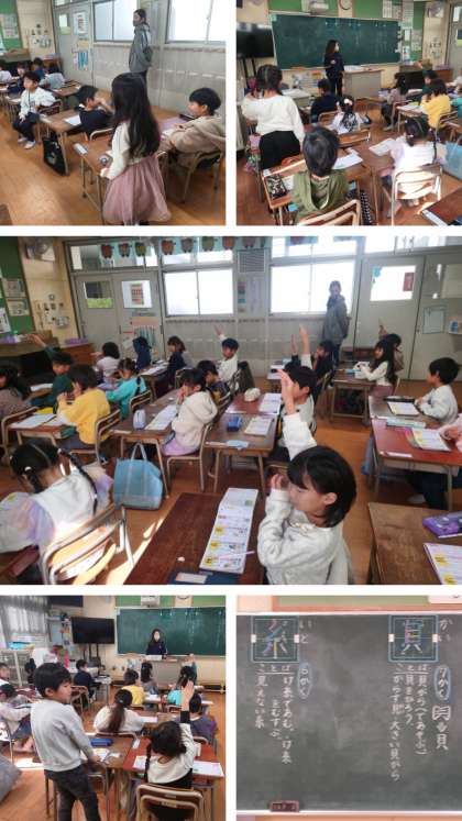 国語科の時間は、「貝」「糸」など新出漢字の練習をしました。