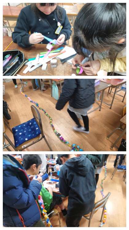 みんなでチェーンの飾りを作ったよ。