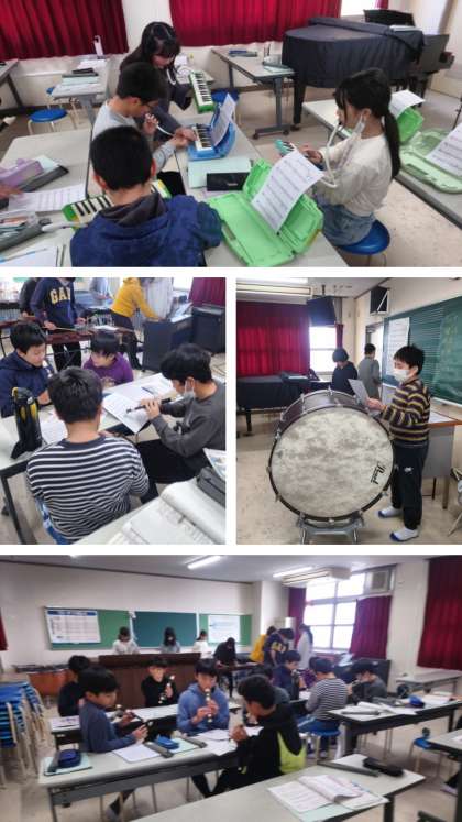 音楽科の時間は、焼野小学校校歌の合奏の練習をしました。