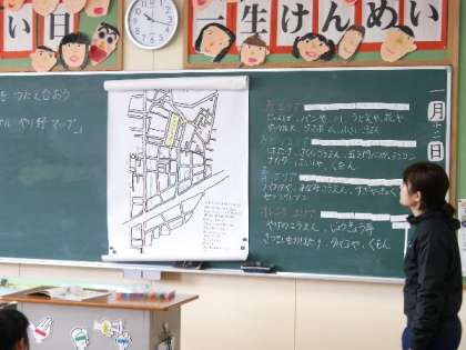 2年生が今週、町探検にまたでかけます。4つのエリアにわかれて調べて、オリジナル焼野マップづくりをします。地域にある公園やお店をだしあっています。