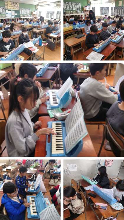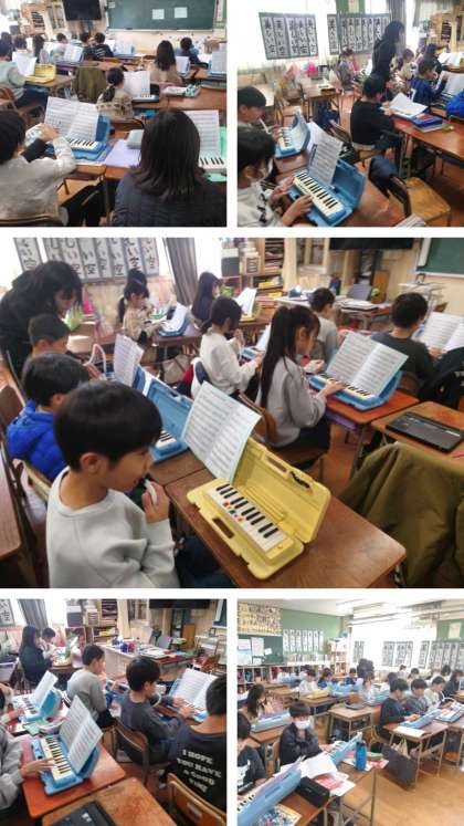 教室では、鍵盤ハーモニカのパート練習をしました。