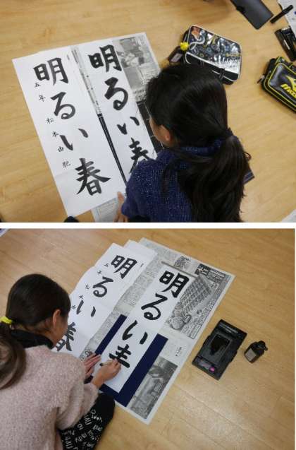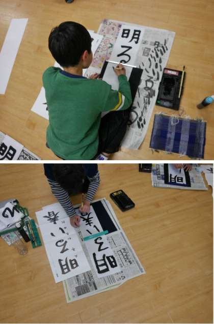 新春の書初め!「明るい春」5年生