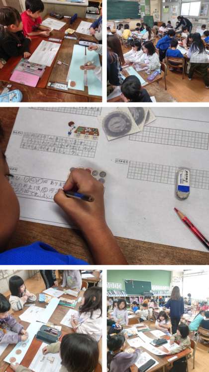 算数科の時間は、グループでお金の出し方を考えながら100までの大きい数について学習しました。