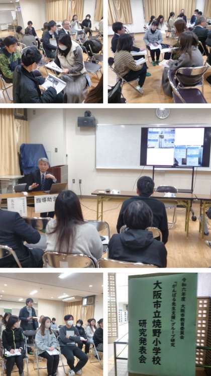 本校の教員の他、他校のたくさんの先生方、また、大阪市教育委員会指導部、大阪市総合教育センター 指導主事の先生方にもご参会いただきました。