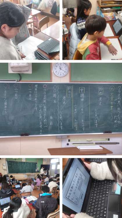 国語科の時間は、クラスの思い出づくりのために何をするのがよいのか、一人一人が考えたことを文章にまとめます。