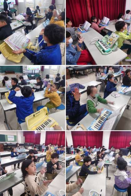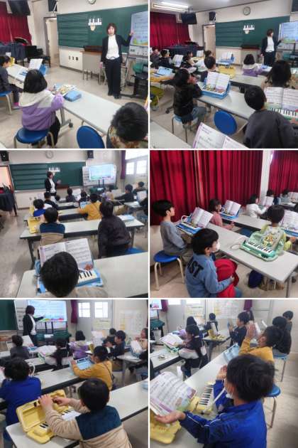 今日は、鍵盤ハーモニカなどの楽器を練習したあと、太鼓のリズムを手拍子などで鳴らしました。