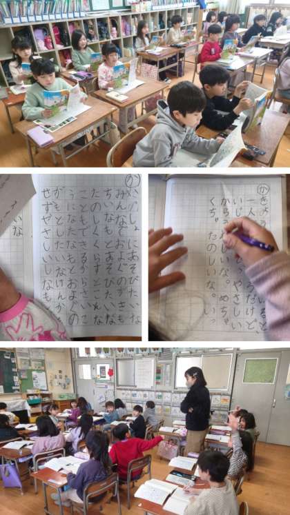 今日は、スイミーと赤い魚たちのようすを読み取って、同じところやちがうところを比べながら、スイミーの気持ちを考えました。