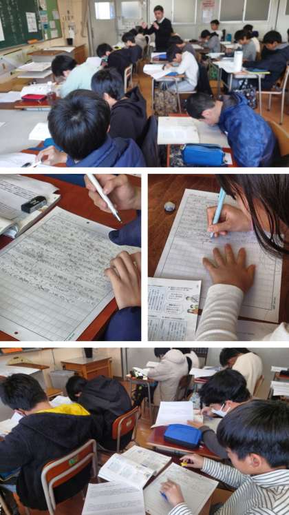 「多面的に検討して意見文を書く」という力をつけるために、複数の情報の中から自分で1つを選び、資料で調べながら、自分の意見文を書きます。
