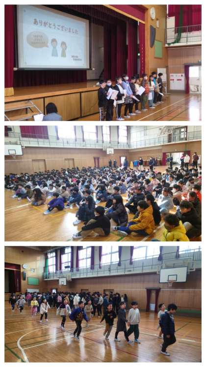 最後に、けが予防のための「にこにこ体操」を全校のみんなで行いました。