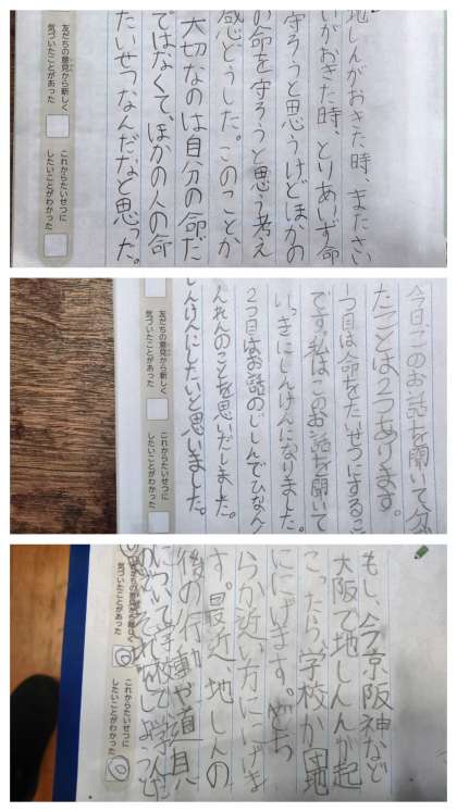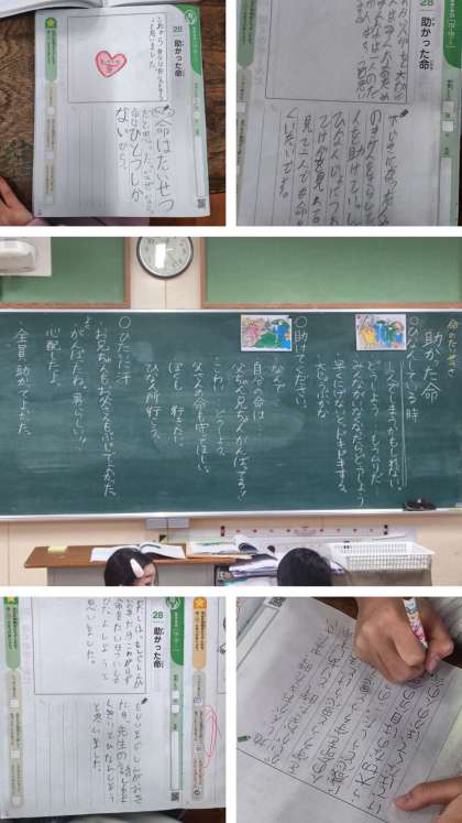 道徳の時間は、教材文「助かった命」の学習をしました。