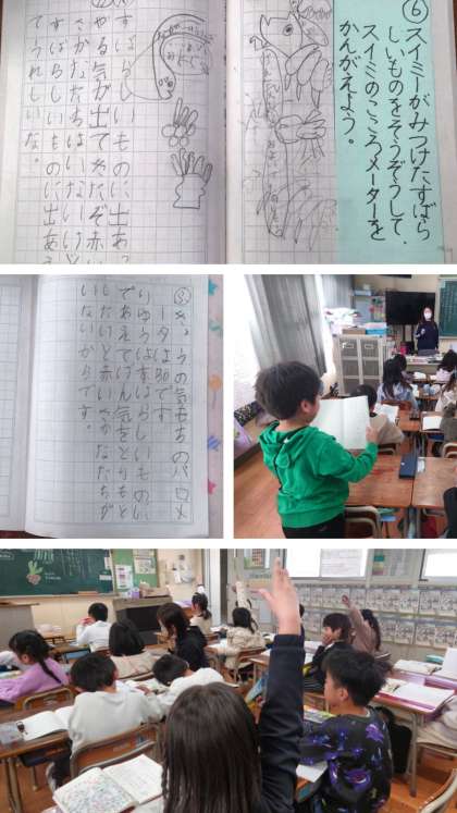 国語科の時間は、教科書の物語文「スイミー」の学習をしています。