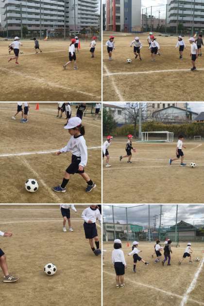 風は冷たいですが、子どもたちは元気よく運動場を走り回っています。