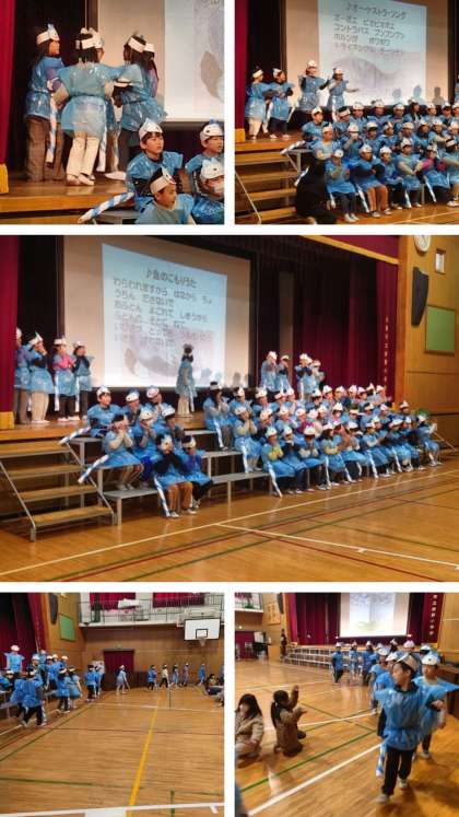 他の学年の子どもたちが見ている前で、学年ごとにリハーサルを行いました。