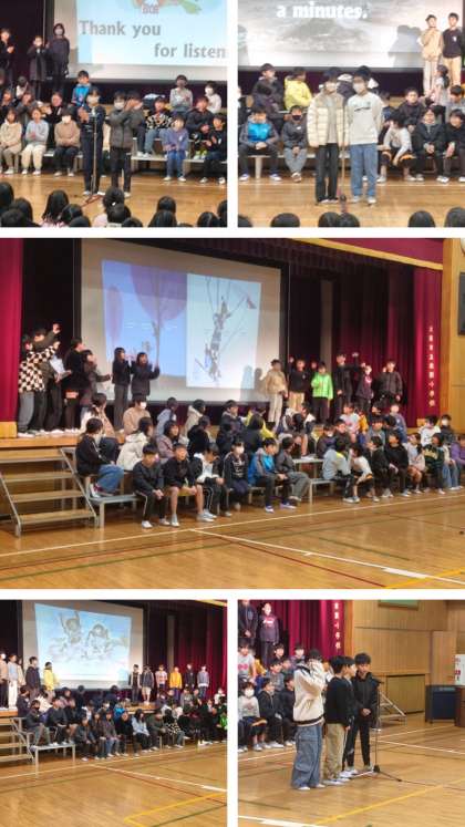他の学年の子どもたちが見ている前で、学年ごとにリハーサルを行いました。