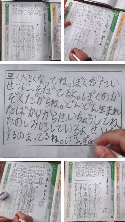 道徳の時間は、教材文「ハムスターの 赤ちゃん」を学習しました。