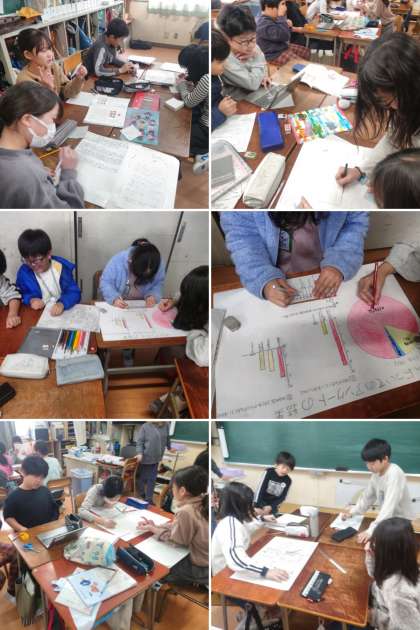 普段の生活で気になっていることをアンケートで調べて、分かったことを報告し、自分たちの生活をよりよくするために役立てます。