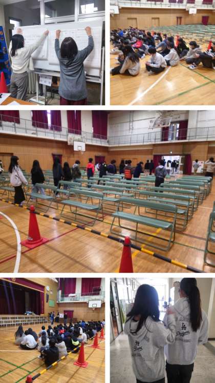 子どもたちは、講堂のいすならべなど積極的に動いていました。