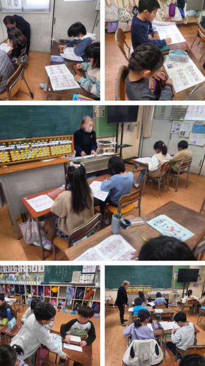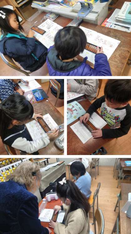 珠算協会の方に教室に来ていただき、そろばんの基本を教えていただきました。