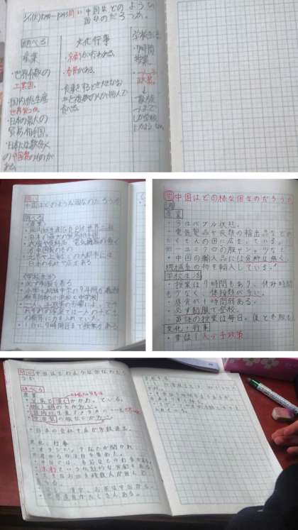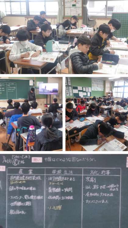 今日は、中華人民共和国の産業や学校・生活、文化・行事について教科書や資料集を中心に調べました。