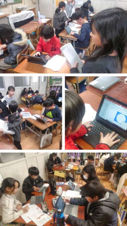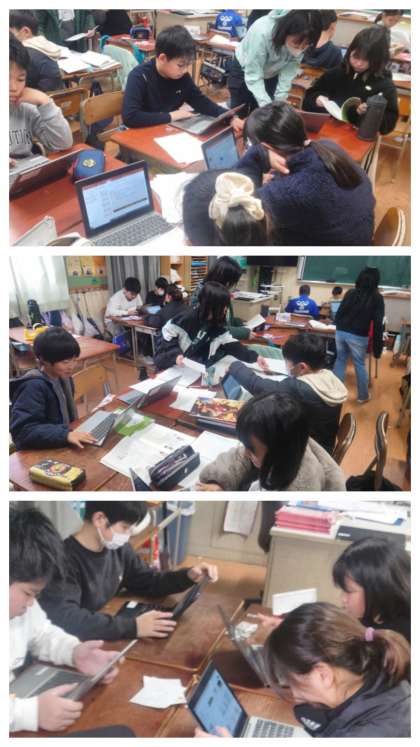 今日は、グループで自分たちがアンケートをとって調べたことをノートやパソコンにまとめました。